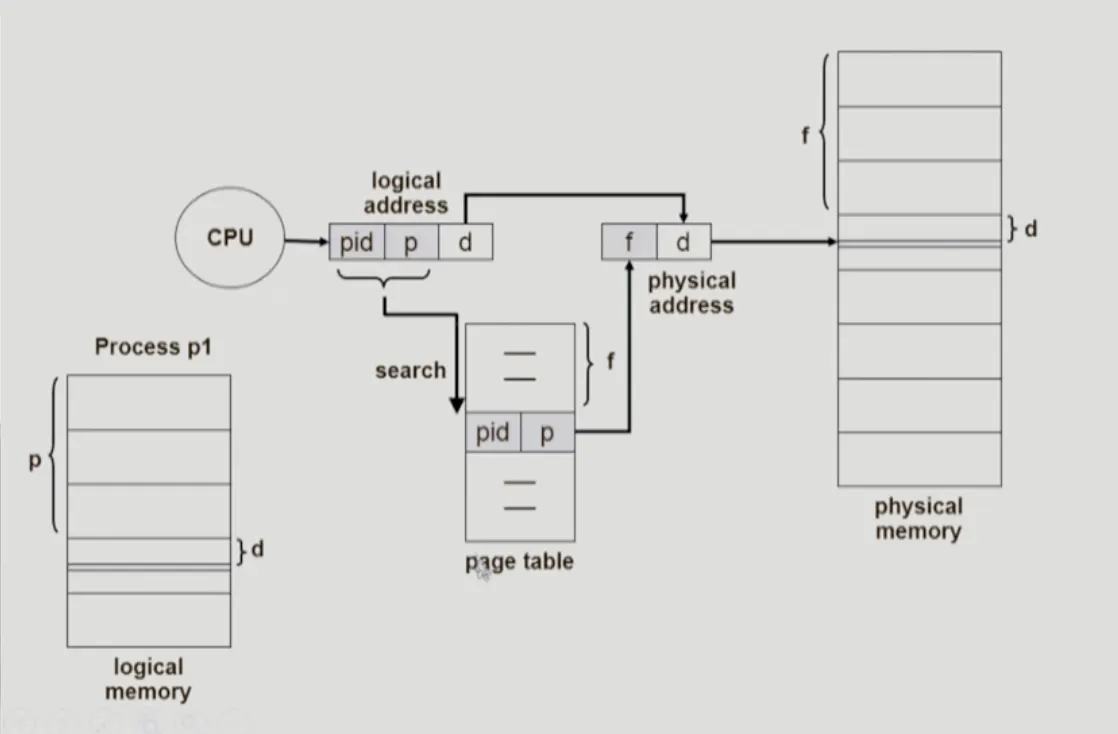검색할 때 마다 테이블 전체를 탐색해야 하므로 검색 시간이 오래 걸리는 단점이 있고, associative register를 사용하여 병렬 검색하는 방식으로 조치할 수 있다.