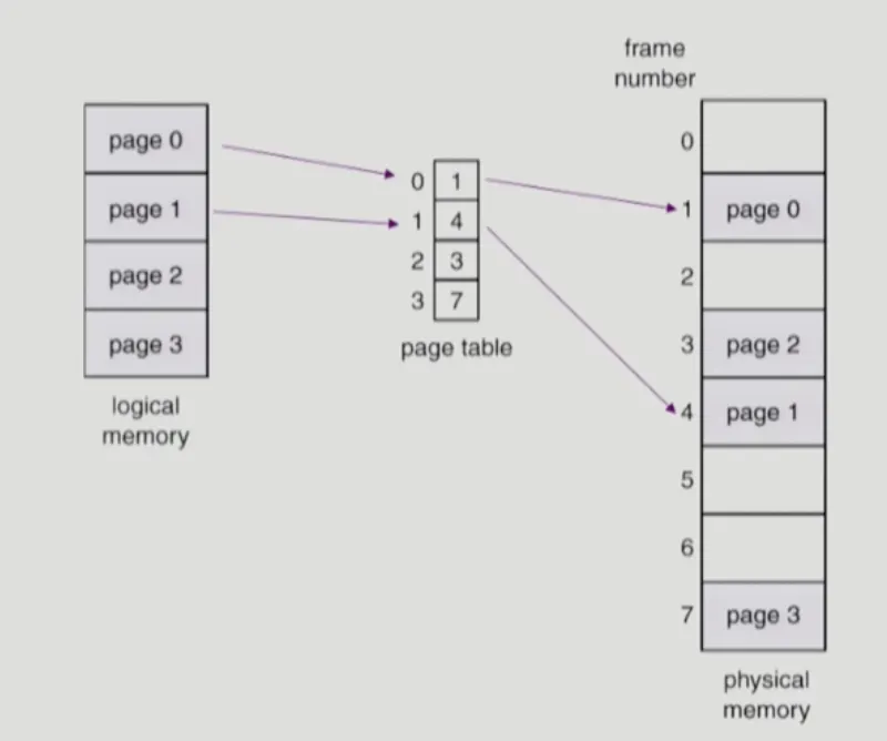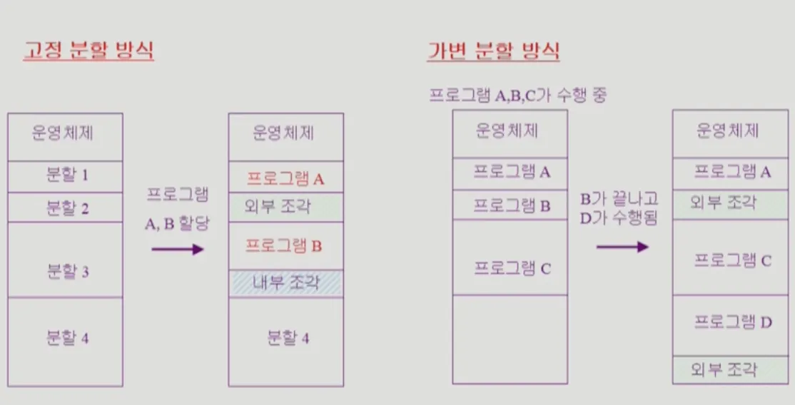하나의 프로세스가 메모리의 여려 영역에 분산되어 올라갈 수 있음