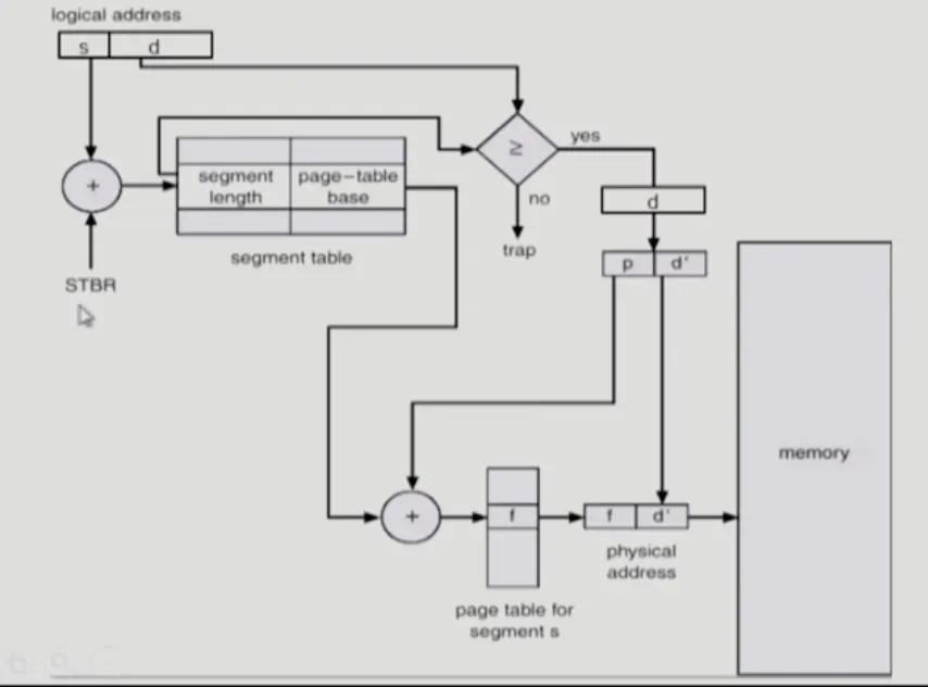segment-table entry가 segment의 base address를 가지고 있는 것이 아니라 segment를 구성하는 page table의 base address를 가지고 있음.