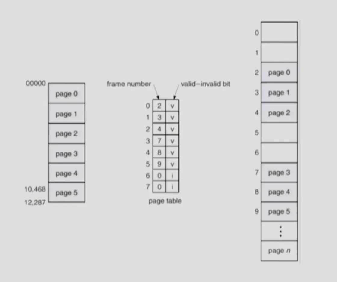 valid는 해당 주소의 frame에 그 프로세스를 구성하는 유효한 내용이 있음을 뜻함 (접근 허용)