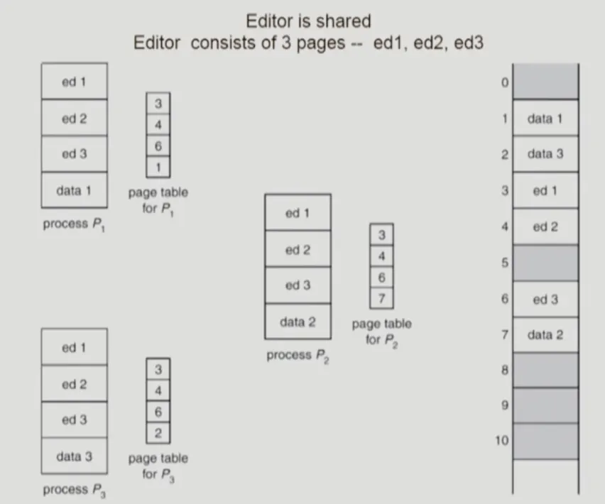 코드 중에선 함께 쓸 수 있는 영역이 있다. 이 것을 shared code라고 하는 데, read-only로 구현하여 프로세스 간에 하나의 코드만 메모리에 올려도 충분할 것이다. (예. 텍스트 편집기, 컴파일러, 윈도우 시스템)