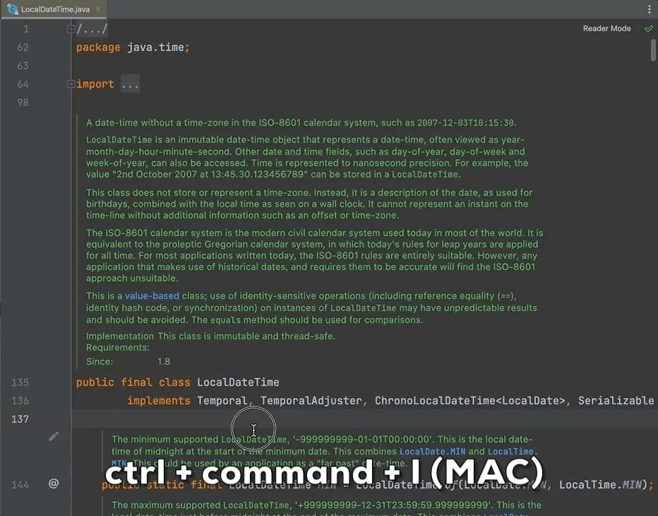 구글 웹사이트에서 사용하는 구글 번역기 기능 아시죠? 동일한 UI를 인텔리제이에서 활용할 수 있습니다. ctrl + command + I 단축키를 통해 사용합니다.