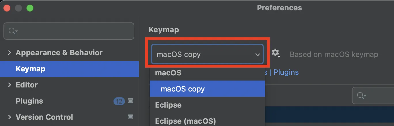본인의 short cut 옵션은 preferences(혹은 settings) → keymap에서 확인할 수 있습니다.