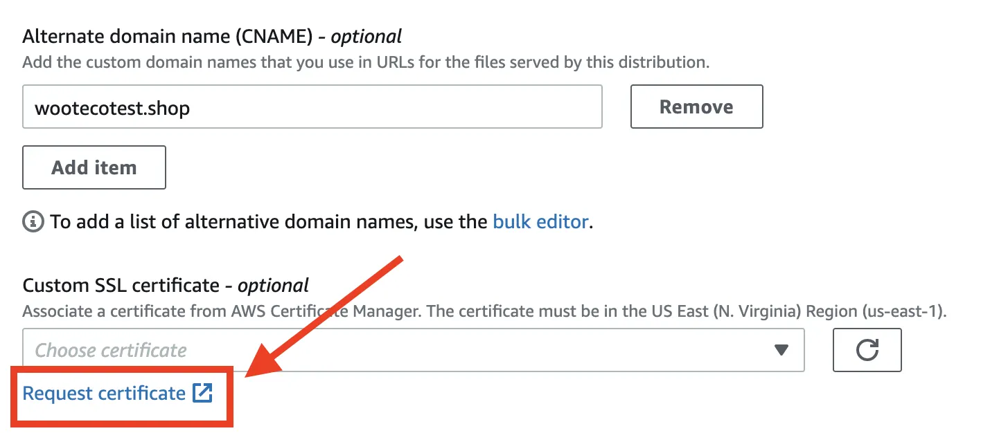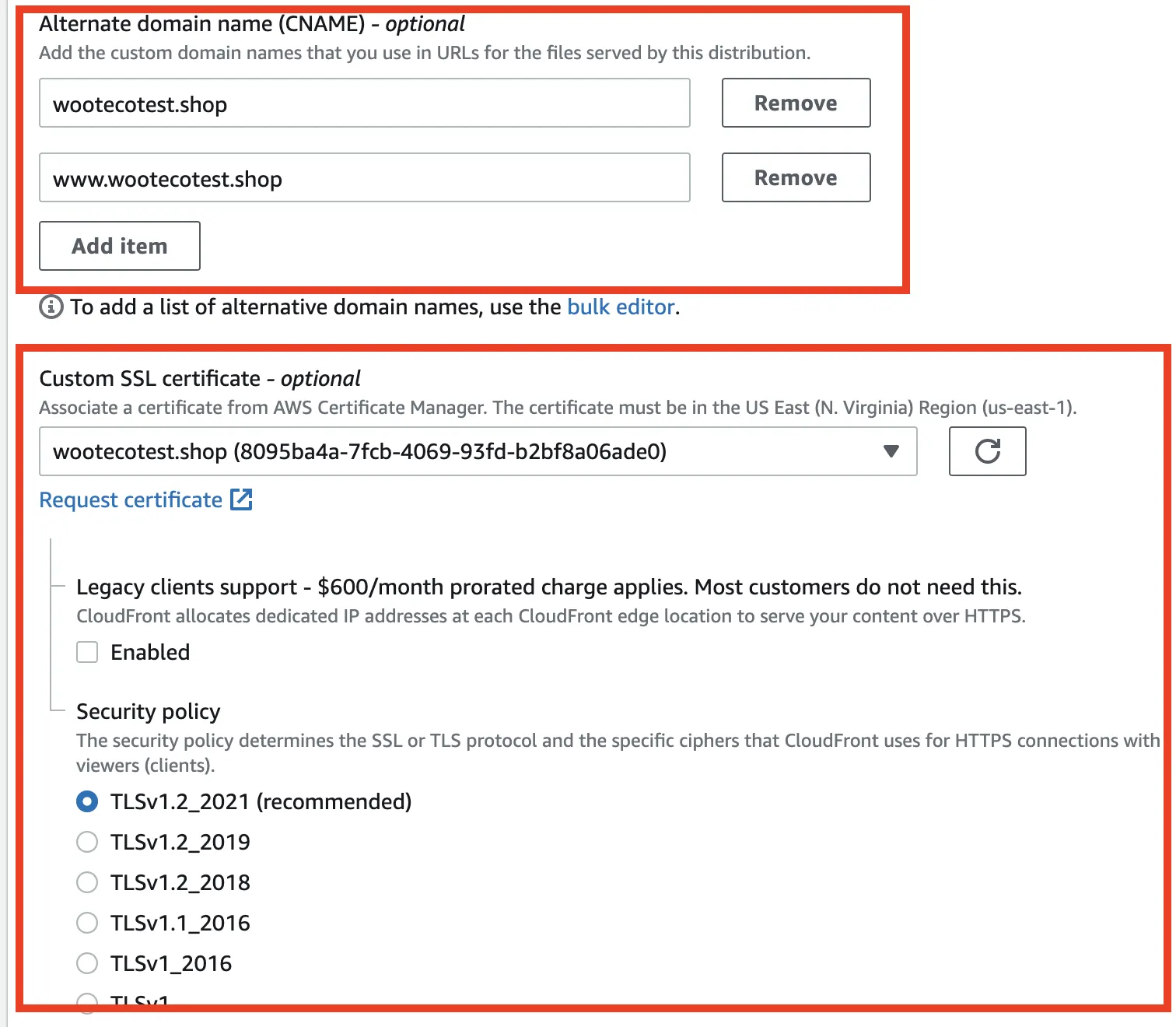 (참고로 하나의 cloutfront distribution에는 하나의 인증서만 적용할 수 있습니다.)