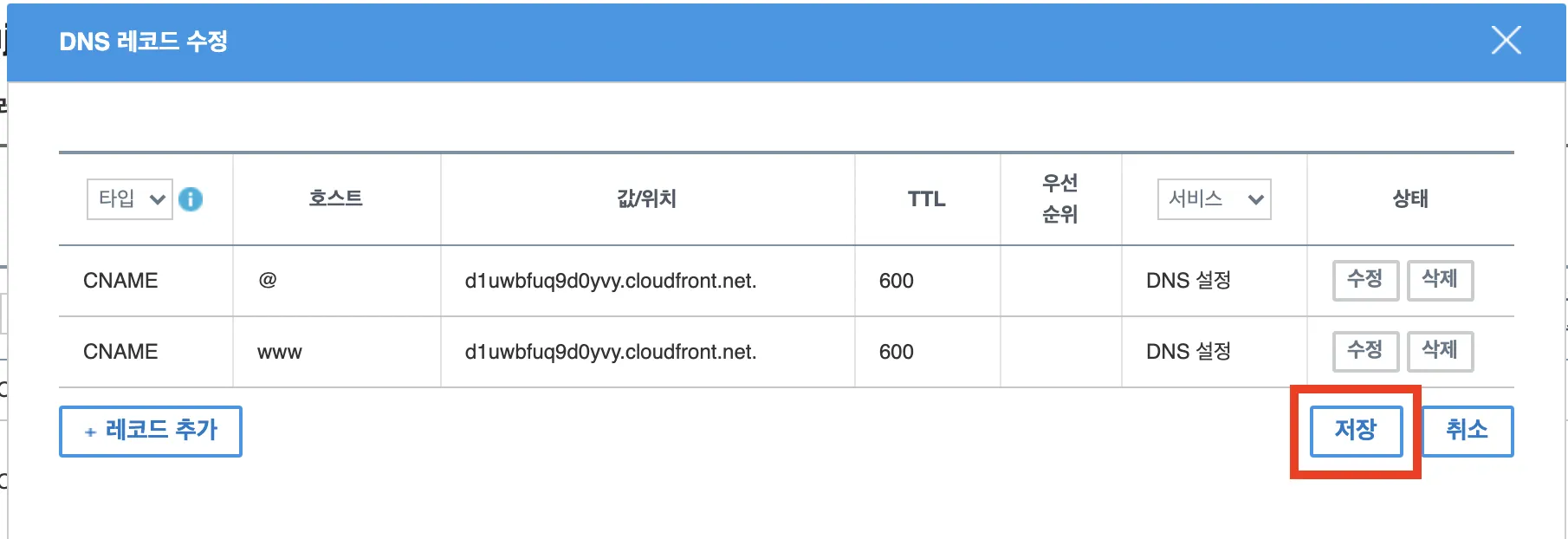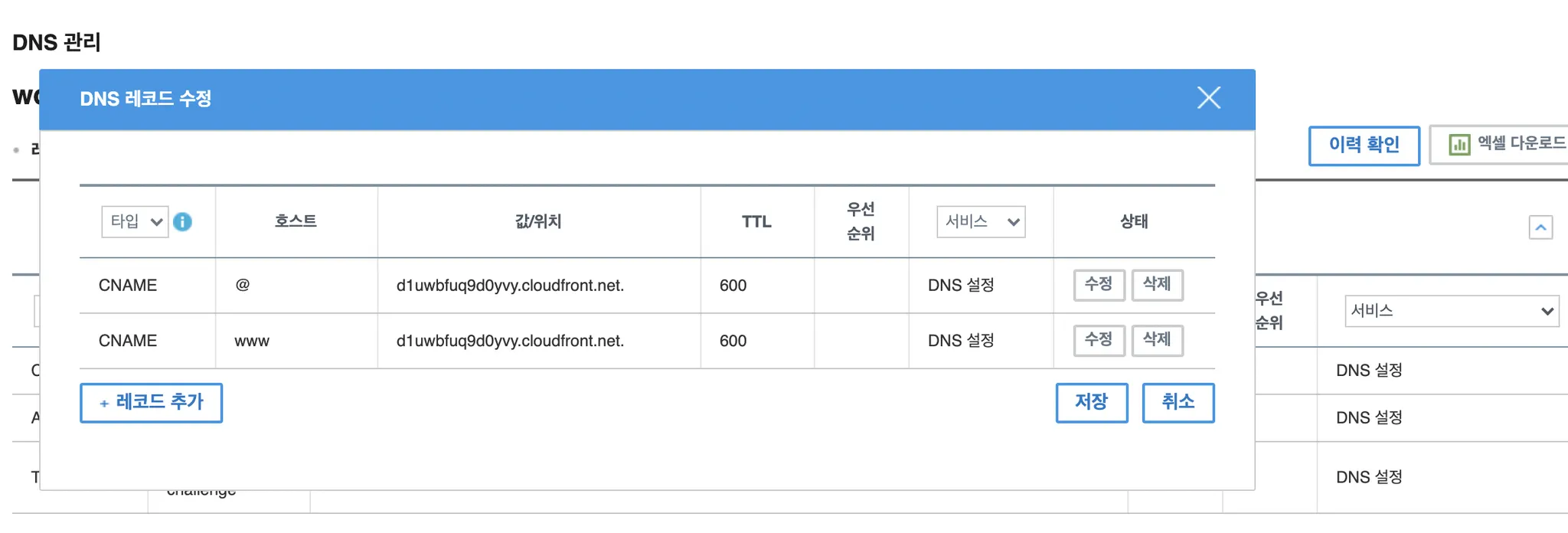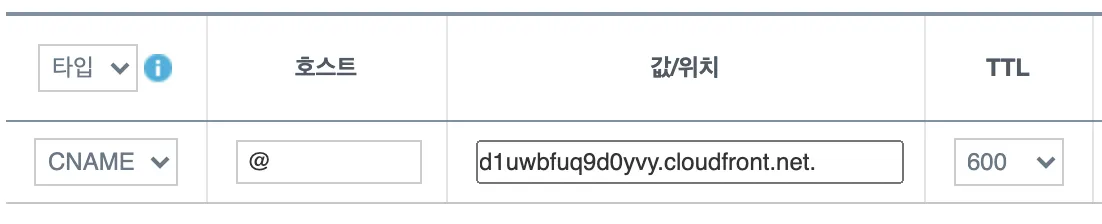CNAME 레코드로 cloudfront 프론트서버 연결하기