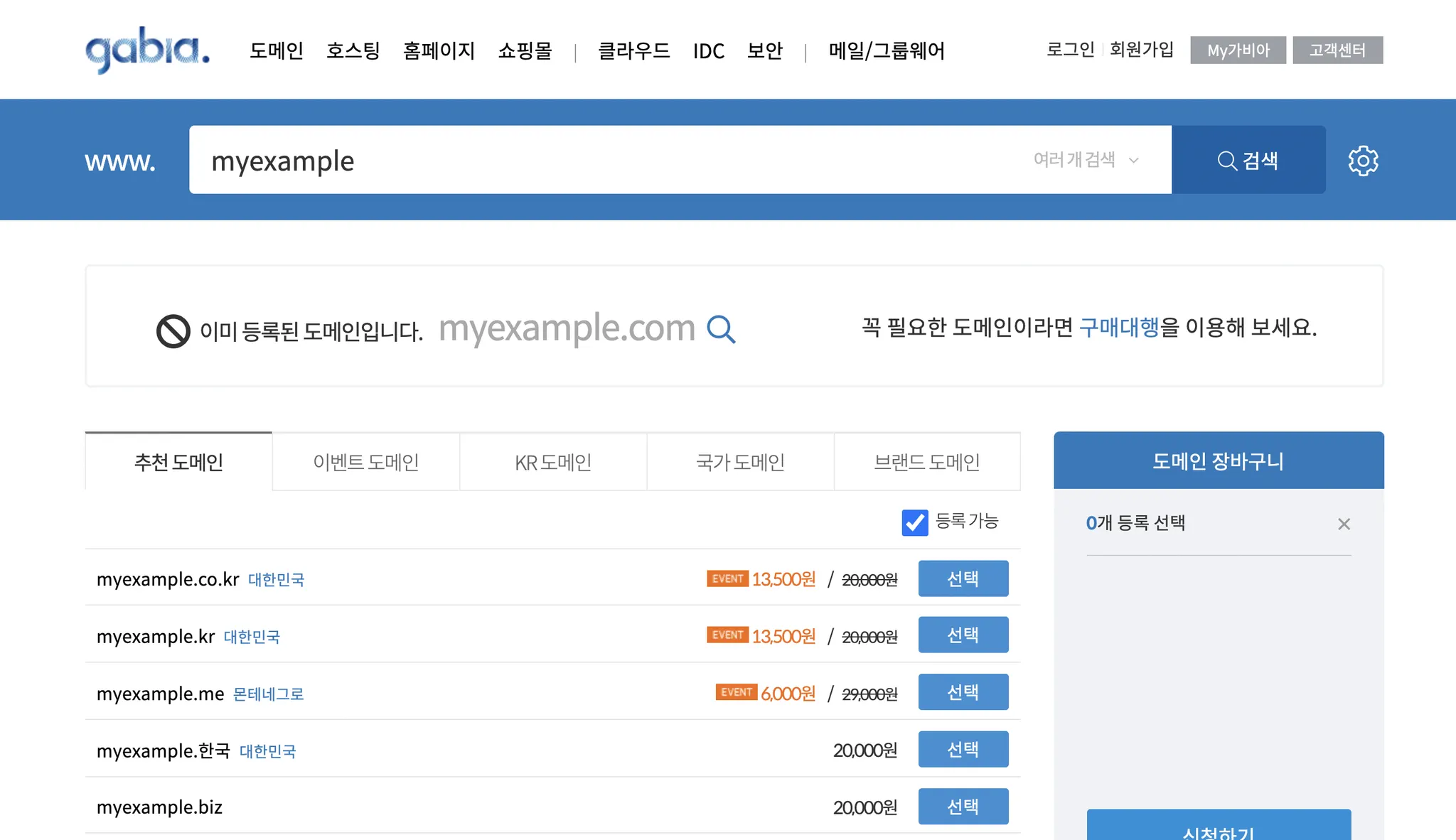 원하는 도메인을 선택하여 구매하시면 됩니다. 가격은 1년 기준이므로, 이쁜 이름과 가격간의 타협을 보시길 바랍니다 ^_^ 참고로 이벤트 가격은 첫 1년만 적용됩니다.