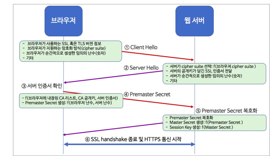 https 프로토콜은 우선 TCP 3way-hand shaking을 하는 부분은 http와 동일합니다. 이후 TLS 암호화를 위해 SSL Handshake를 시작합니다. 이 과정 중 서버는 Server Hello과정에서 서버의 공개키가 담긴 SSL 인증서(fullchain.pem)를 클라이언트에게 전달하는데 이 인증서에는 공인인증기관 정보가 함께 담겨있기 때문에, 브라우저는 헷갈리지 않고 서버에서 알려준 CA에게 인증서를 요청할 수 있었던 것 입니다.