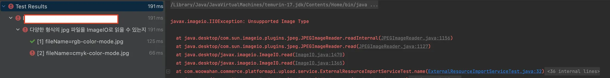 RGB 타입은 read하지만, CYMK타입은 IO Exception이 발생한다. (javax.imageio.IIOException: Unsupported Image Type)
