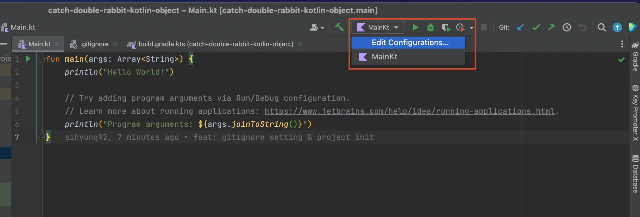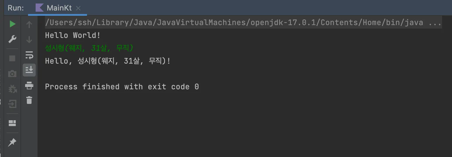 fun은 메서드, main은 메인문, args는 변수명, Array는 타입인가 보다. static은 없는걸까?